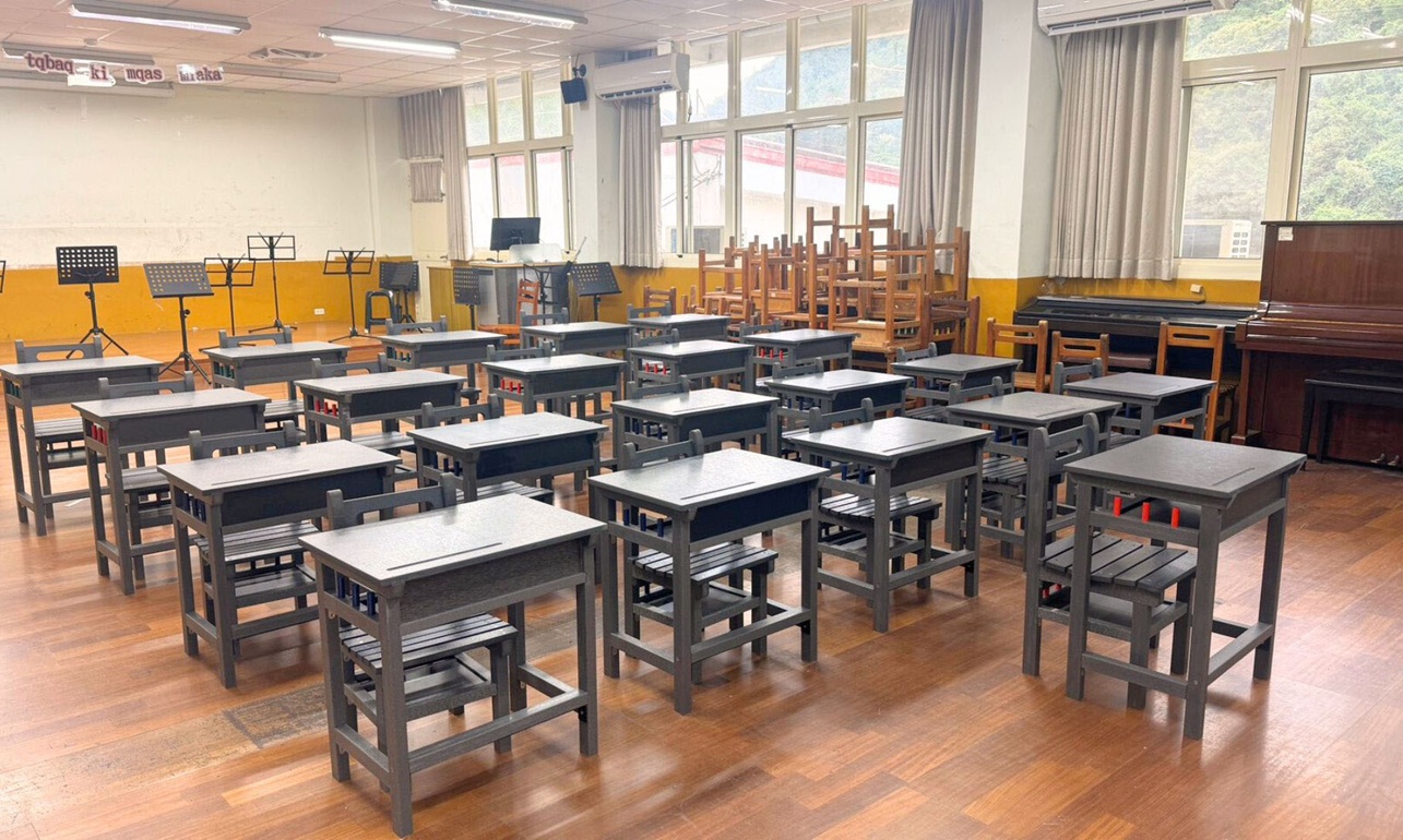 科技能夠強化社會韌性,於急難發生之際,協助快速復原;也能讓資源循環運用,嘉惠弱勢偏鄉教育現場。偏鄉國小與弱勢課輔班桌椅,使用年限多已超過教育部建議的5年汰換期,其中也不乏10年、15年的老舊設備,部份都會學校轉送的課桌椅,則尺寸不一、結構或表面損壞的問題,可能影響學童坐姿與書寫。