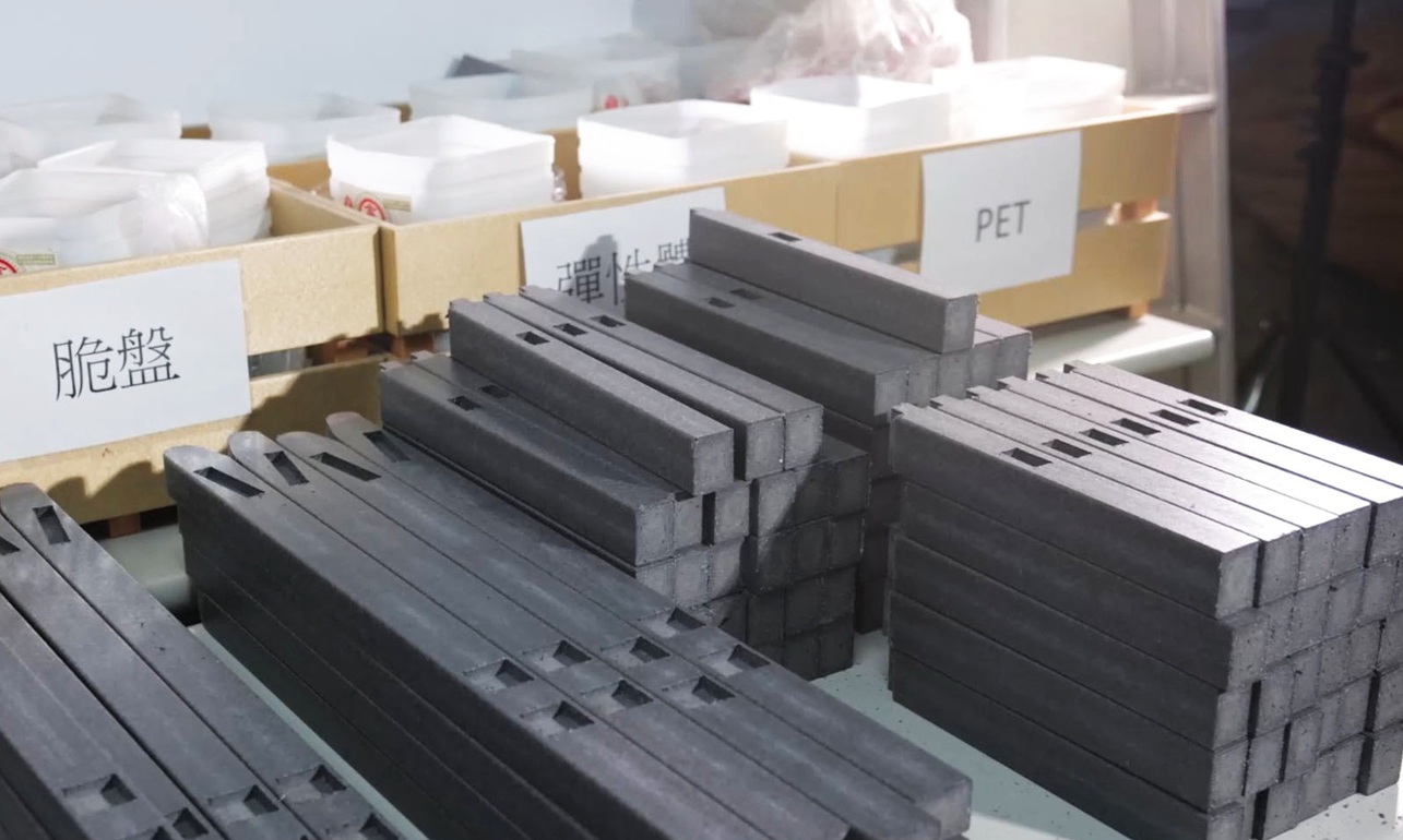 工研院運用「再生混紡織木」材料技術,將紡織廢棄物進行專利處理、熔融、改質再生,再加工成為課桌椅,捐贈給偏鄉小學,讓資源重新定位,兼顧永續與公益。